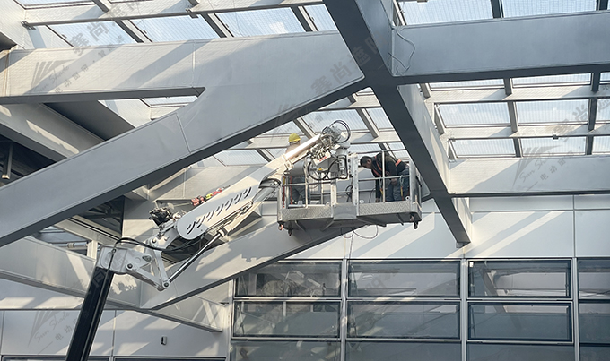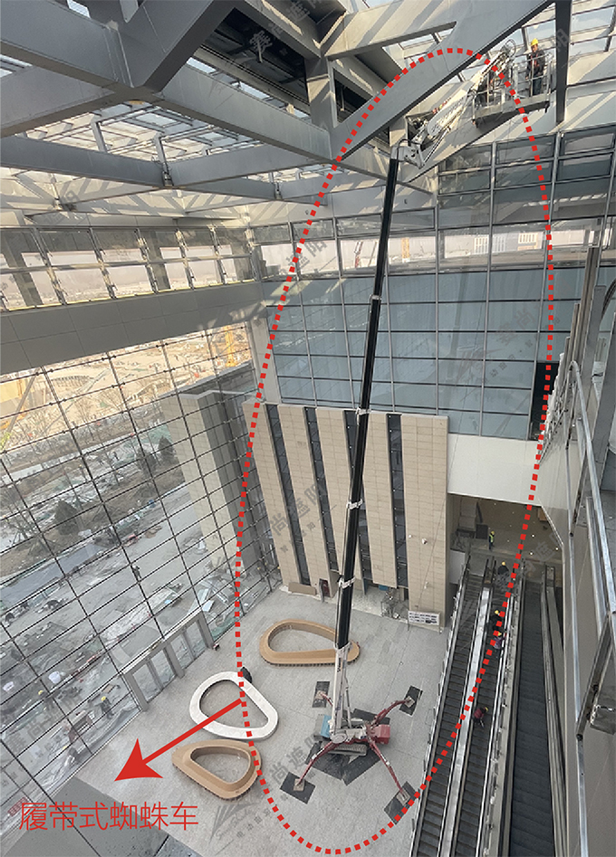 由此可見,我們可以看到在安裝采光頂天棚簾過程中,為了此項(xiàng)目能盡快順利完工,項(xiàng)目上用到的履帶式蜘蛛車協(xié)助工作,為什么不用腳手架呢,下面就跟隨小編來了解一下它的工作原理及優(yōu)勢:
