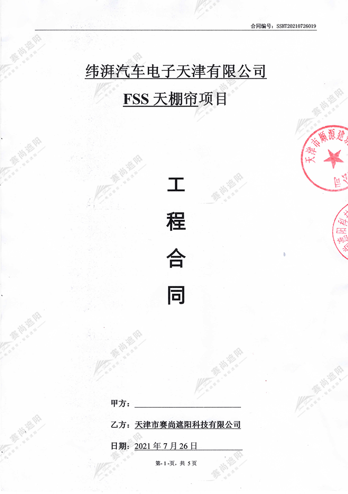 熱烈慶祝天津賽尚遮陽與天津緯湃汽車電子有限公司采光頂FSS天棚簾遮陽項目于2021年7月26日簽單成功。