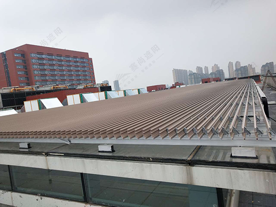 南昌大學第一附屬醫院采光頂外遮陽歐式百葉施工進行中