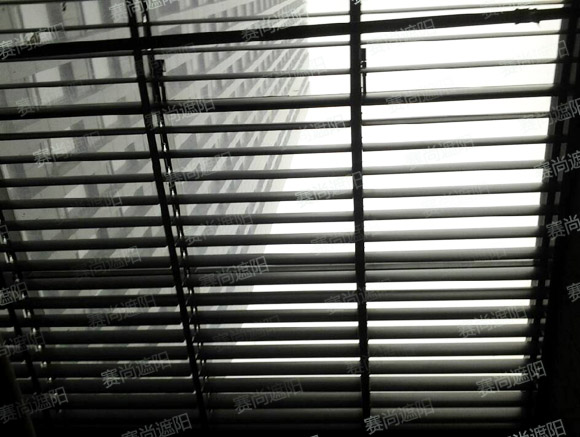 中船重工頂棚遮陽采用梭形百葉做室內(nèi)頂棚遮陽,梭形百葉可有效的遮陽隔熱,調(diào)節(jié)光熱環(huán)境,并可通過葉片的翻轉(zhuǎn)精確的調(diào)整進(jìn)入室內(nèi)的光線,達(dá)到精確調(diào)光的功效。另外梭形百葉還具有良好的通風(fēng)效果。梭形百葉如果安裝在建筑外,遮陽隔熱效果更佳,不過安裝在室內(nèi),維護(hù)成本低,降低損耗,也可一定程度延長(zhǎng)使用年限。