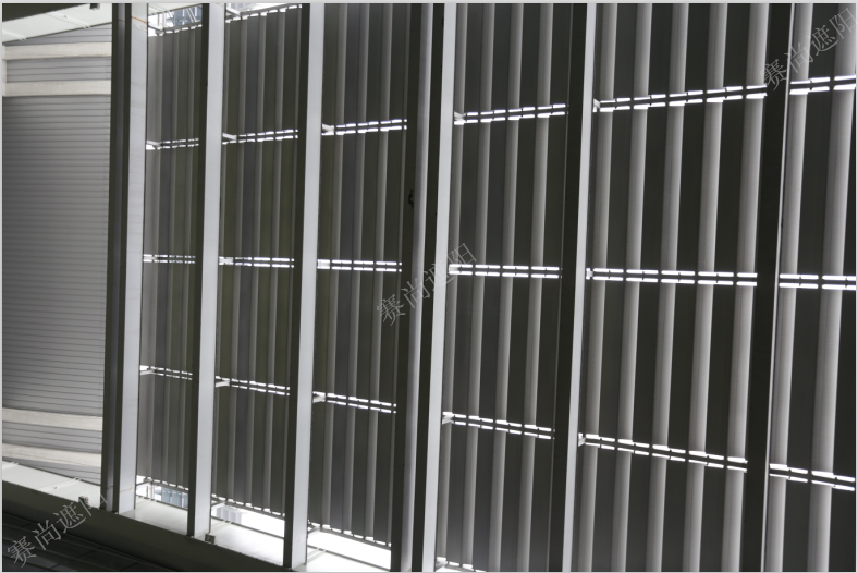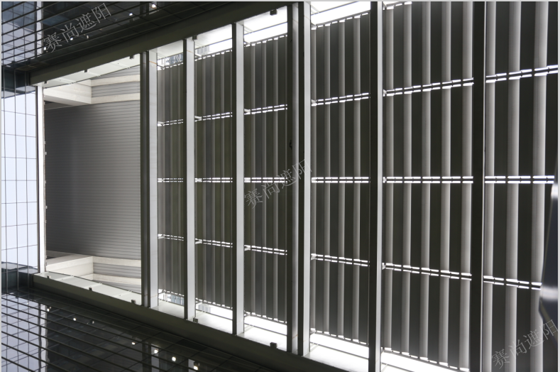 采用400mm梭形百葉做為中廳遮陽的主遮陽產品,不僅使建筑立面更加豐富多彩,更有改善建筑室內環境、提高節能的作用。在夏季,能正確有效地阻擋太陽光照和熱輻射,調節建筑內部環境;在冬季,關閉的葉片還能有效防止室內熱量散失,有助于調控室內溫度,起節能的作用。