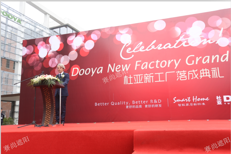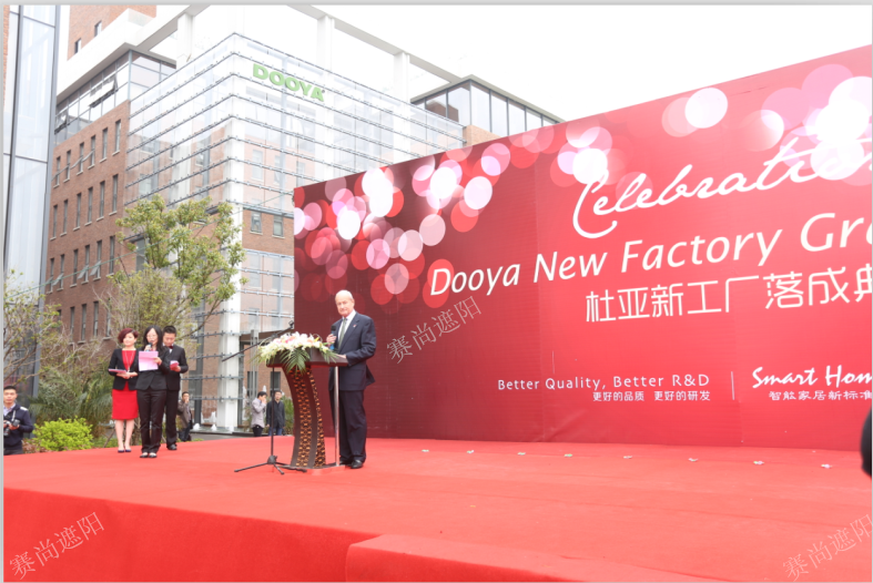 3月28日,寧波杜亞機(jī)電技術(shù)有限公司(以下簡(jiǎn)稱杜亞)新工廠落成慶典在寧波隆重舉行。作為全球知名的智能家居與窗簾電機(jī)生產(chǎn)廠商,杜亞的此次新工廠落成慶典格外引人注目,大約3600人參加了此次活動(dòng),天津市賽尚遮陽(yáng)科技有限公司總經(jīng)理金鑫冶先生也受邀參加了此次慶典活動(dòng)。