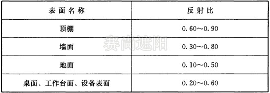 辦公、圖書(shū)館、學(xué)校等建筑的房間,其室內(nèi)各表面的反射比宜符合表5.0.4的規(guī)定。