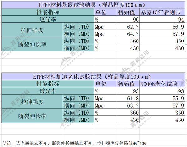 ETFE膜只有同等大小的玻璃質量的1%;韌性好、抗拉強度高、不易被撕裂,延展性大于400%;