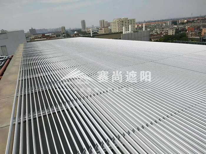 歐式百葉可適用于多種形狀的采光頂,圓形、長方形、正方形或梯形等多種不規則的圖形,使遮陽產品與建筑物很完美的結合在一起,既起到遮陽調光又能起到美化幕墻的作用。