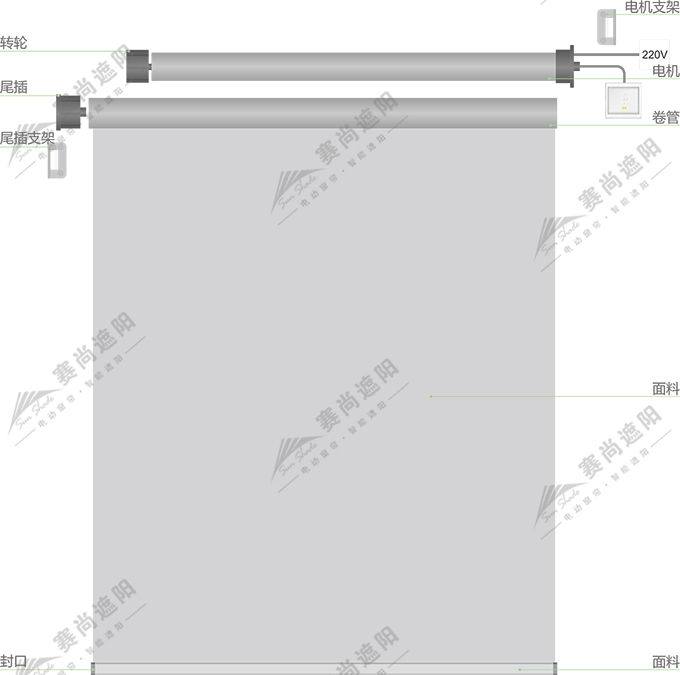 電動遮陽卷簾為電動遮陽窗簾的一種,遮陽材料使用織物面料,通過電機轉動卷管的轉動而上下運行,起到遮陽隔熱、陽光調節、裝飾美化的作用。