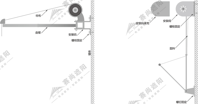 遮陽篷安裝在戶外,對面料的要求相對較高。面料的選擇需考慮色彩,色差耐久性及張力抗風(fēng)性等因素。一般選擇戶外遮陽篷面料,如聚酯面料,100%溶液染色腈綸面料(亞克力)等,需避免使用低檔次的滌綸面料,顏色盡量為深色。防風(fēng)及幕墻外立面管理是電動遮陽篷安裝時需要考慮的因素,盡量要選擇高品質(zhì)的遮陽篷面料,配置安裝風(fēng)光傳感器。